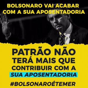 Bolsonaro e seu time econômico já declararam também que avaliam usar a reforma da previdência proposta pelo governo golpista de Temer, que, entre outras tantas atrocidades, quer atacar a previdência dos servidores públicos, aumentando em dez anos o tempo mínimo de contribuição.
